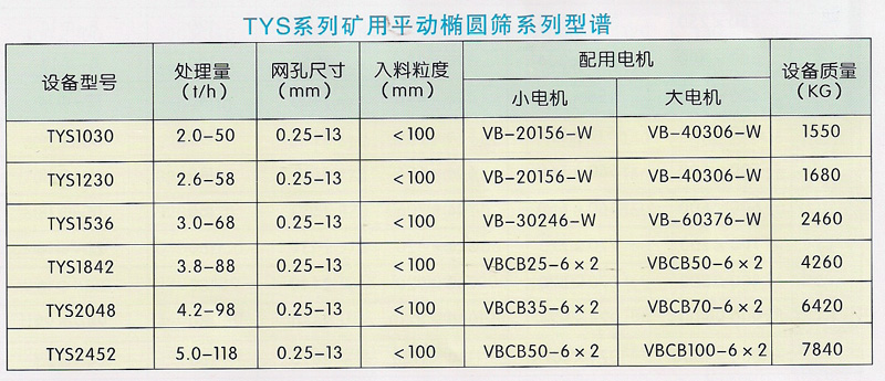 TYS系列礦用平動橢圓篩利用“單質體雙軸慣性振動篩力心理論”和“雙軸不等質徑積(矩)追隨自同步和同步狀態(tài)穩(wěn)定性理論”,選用兩組不等質徑積比的振動電機做激振源,實現(xiàn)振動篩平動橢圓振動。